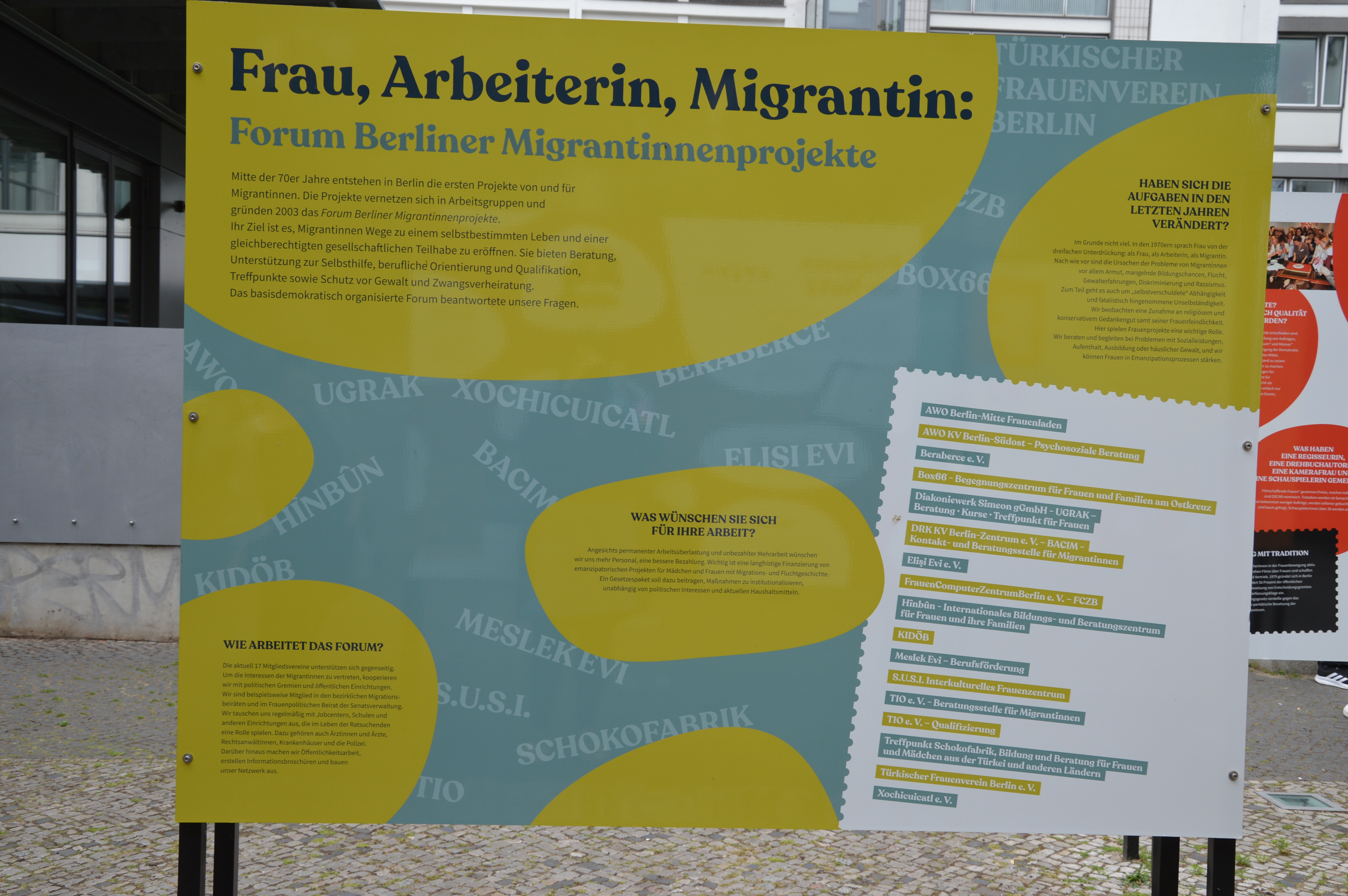 Die berliner Landeszentrale für politische Bildung hat eine Ausstellung zur historischen Frauenbewegung und zu acht aktuellen feministischen Initiativen in Berlin vorbereitet. Es handelt sich um eine Open-Air Ausstellung auf 8 zweiseitige Tafeln, die vor der LpB-Zentrale im Amerikahaus in der Hardenbergstraße stehen.