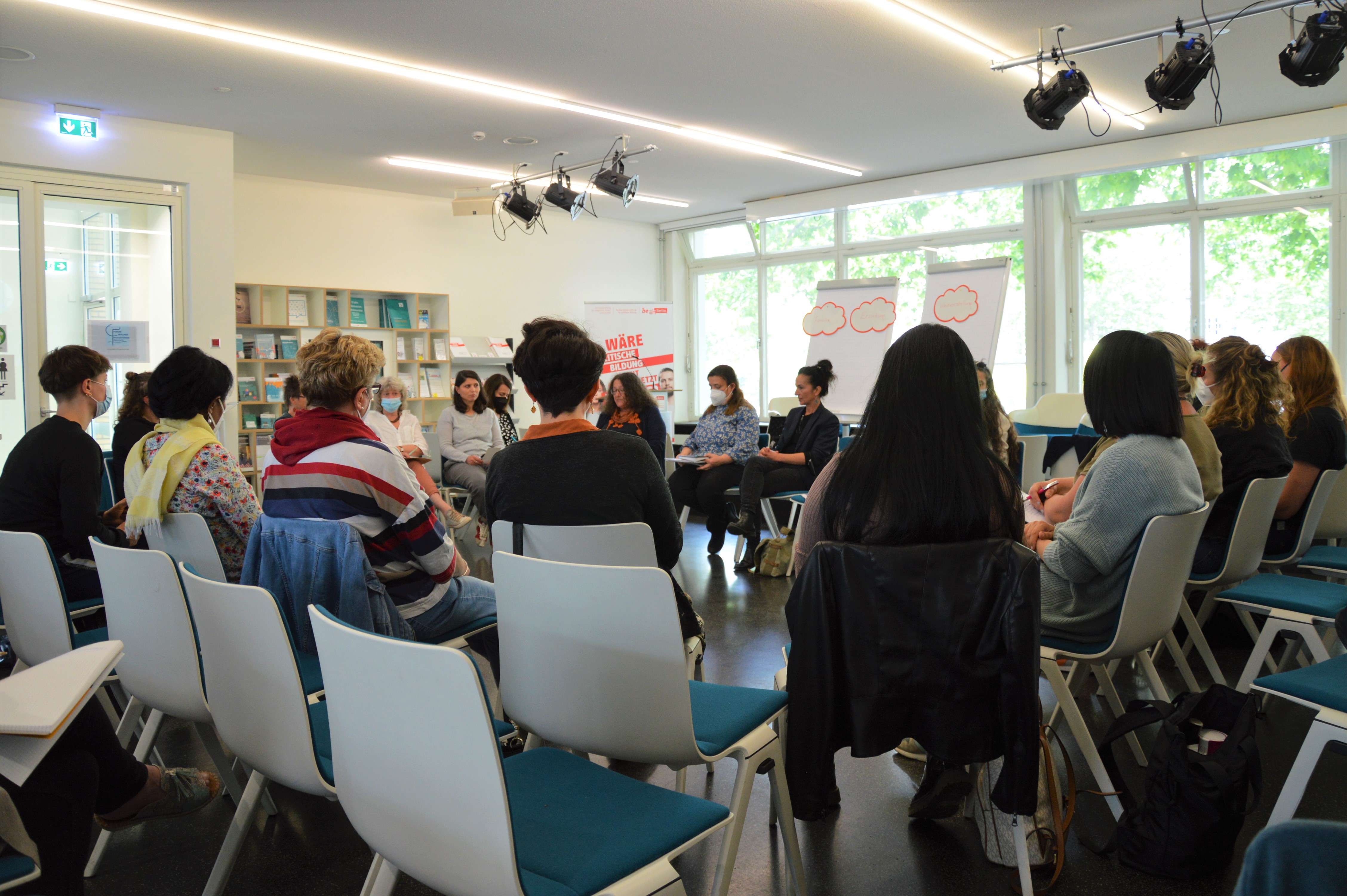 Diese Kooperationsveranstaltung zur Situation migrantischer Frauen* in Berlin findet im Kontext der Open-Air-Ausstellung »Die Hälfte Berlins – ein Blick auf 150 Jahre Frauenbewegung« der Berliner Landeszentrale für politische Bildung statt.